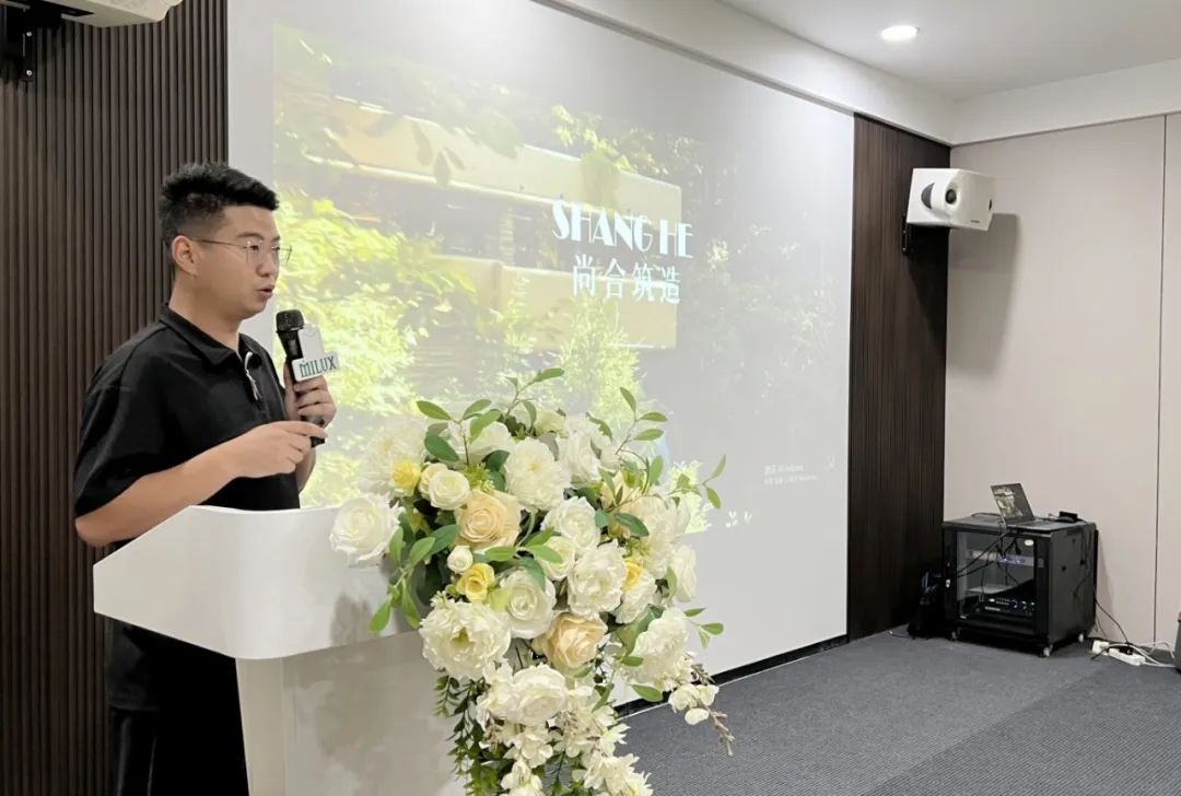 在設(shè)計(jì)分享環(huán)節(jié),尚合設(shè)計(jì)總監(jiān)周迪帶來(lái)了前沿的設(shè)計(jì)理念和案例分享。他高度評(píng)價(jià)了米蘭之窗:“這里凝聚了匠人精神和高科技含量,產(chǎn)品注重節(jié)能環(huán)保,真正實(shí)現(xiàn)了設(shè)計(jì)與功能的完美結(jié)合?!?