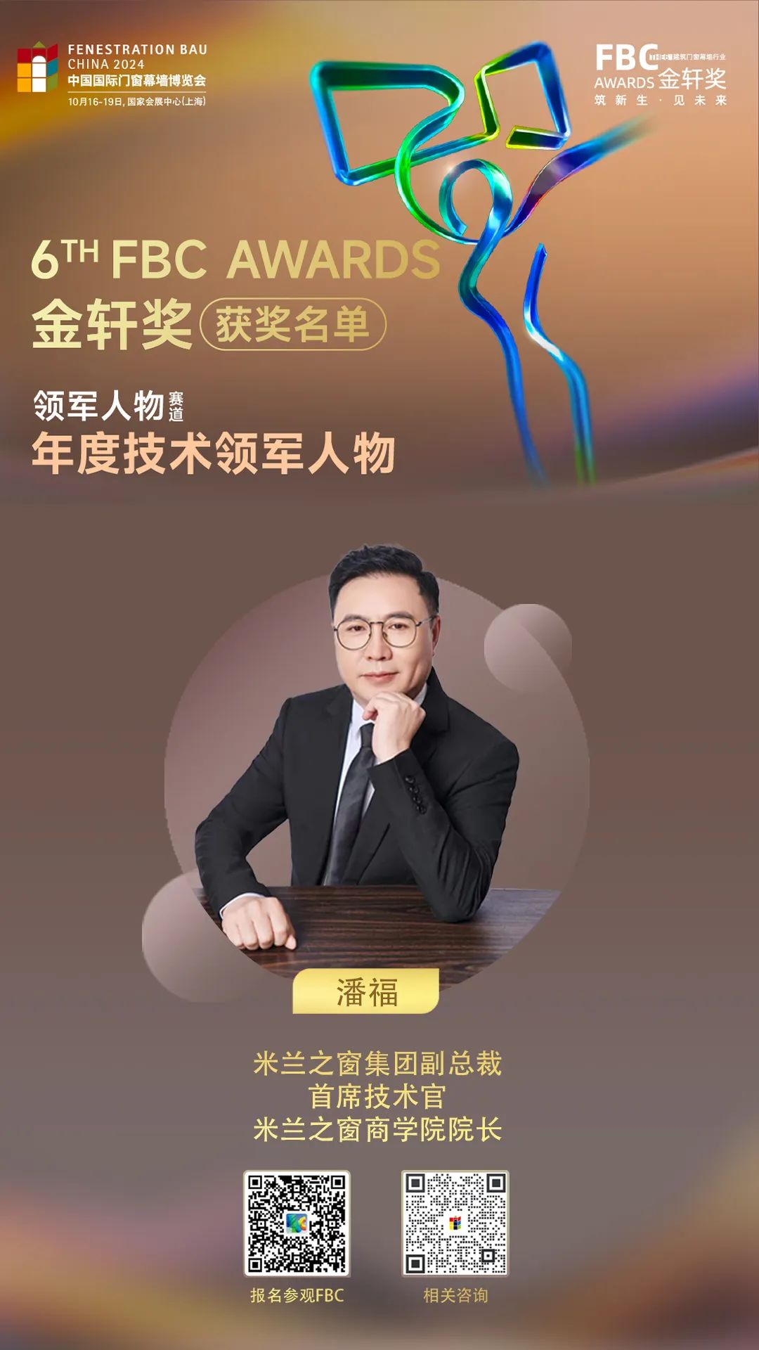 技術(shù)創(chuàng)新是米蘭之窗持續(xù)領(lǐng)跑的核心動力,此次榮獲“年度技術(shù)領(lǐng)軍人物”獎項,是對潘福在技術(shù)領(lǐng)域多年來耕耘和突破的充分肯定。他帶領(lǐng)的技術(shù)團隊,專注于提升門窗關(guān)鍵性能,研發(fā)了多款具備卓越性能的門窗產(chǎn)品,贏得了市場和用戶的高度認可。他在國家標準、行業(yè)標準的制定與推廣中發(fā)揮了重要作用,推動了中國門窗行業(yè)整體技術(shù)水平的提升。