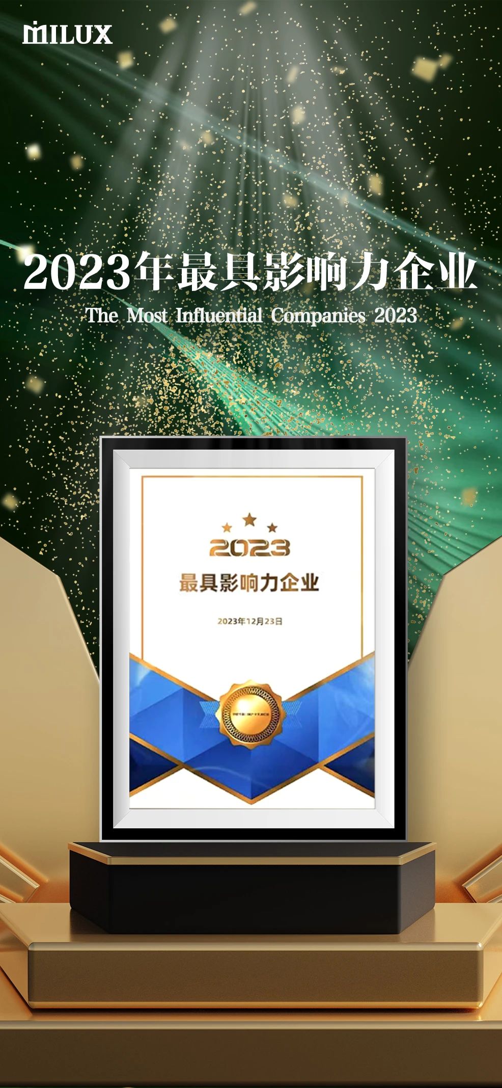 值得一提的是,米蘭之窗在研發(fā)、生產(chǎn)和服務等環(huán)節(jié)中,始終堅持創(chuàng)新的精神,不斷推陳出新,已經(jīng)成為走在行業(yè)前列的領頭羊企業(yè),對門窗行業(yè)做出了突出貢獻。為此,主辦方授予了米蘭之窗“2023年度最具影響力企業(yè)”稱號。