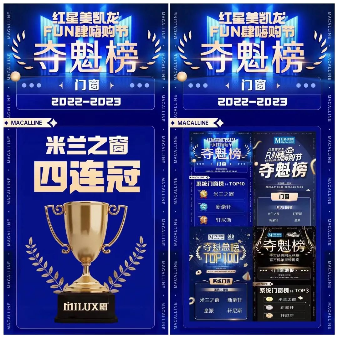 近日,紅星美凱龍818FUN肆嗨購節(jié)圓滿落下帷幕,米蘭之窗在2022年度315、818FUN肆嗨購節(jié),2023年315FUN肆嗨購接連奪得榜首后,再次強勢奪魁!對米蘭之窗來說無疑又是一次來自業(yè)界以及消費者的高度肯定,也是米蘭之窗作為系統(tǒng)門窗標桿品牌的又一次實力印證。