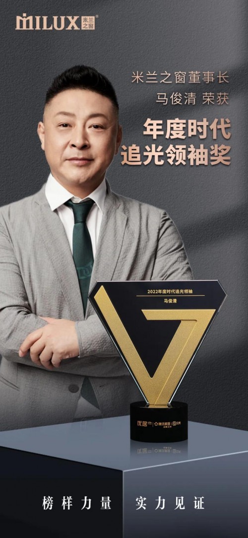 ??此次被評為“2022中國家居品牌力量榜追光領袖”,不僅是對馬俊清董事長個人卓越行業(yè)貢獻的嘉譽,更是對所有家居行業(yè)伙伴攜手并進、砥礪前行的激勵!在為百姓奔赴健康美好品質生活的道路上,米蘭之窗將始終堅守“以高品質門窗守護千家萬戶的美好生活”的初心,為打造中國定制家居領導品牌與行業(yè)標桿穩(wěn)健前行,為家居行業(yè)的有序健康發(fā)展持續(xù)貢獻力量!