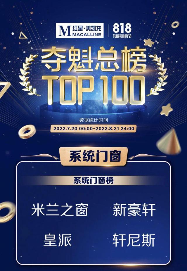 9月4日,“紅星美凱龍818FUN肆嗨購節(jié)”TOP100奪魁總榜頒獎盛典在紅星美凱龍上海全球家居1號店隆重舉行,米蘭之窗奪魁《系統(tǒng)門窗榜》榜首,這是繼315FUN肆嗨購節(jié)之后再次奪魁。本次頒獎盛典,米蘭之窗董事長馬俊清、執(zhí)行總裁陳濤應(yīng)邀出席,與來自家居行業(yè)的頭部品牌齊聚現(xiàn)場,共同見證榮耀時刻。這不僅僅是一場大促的總結(jié)復(fù)盤,更是整個家居行業(yè)對信心和希望以及自發(fā)向上發(fā)出的最強音。市場穩(wěn)健提升,產(chǎn)業(yè)與需求端良性循環(huán)加速,沒有什么比一場勝利的收獲更能鼓舞所有人的信心。